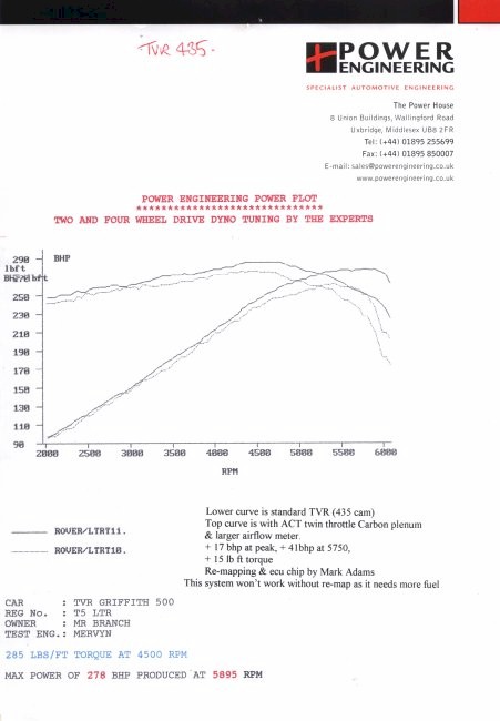 So the TVR Griffith 500 gives out (according to TVR) 340BHP however