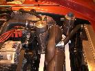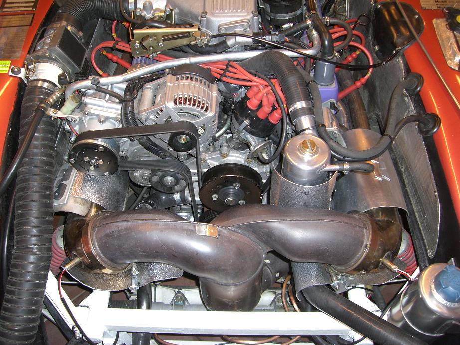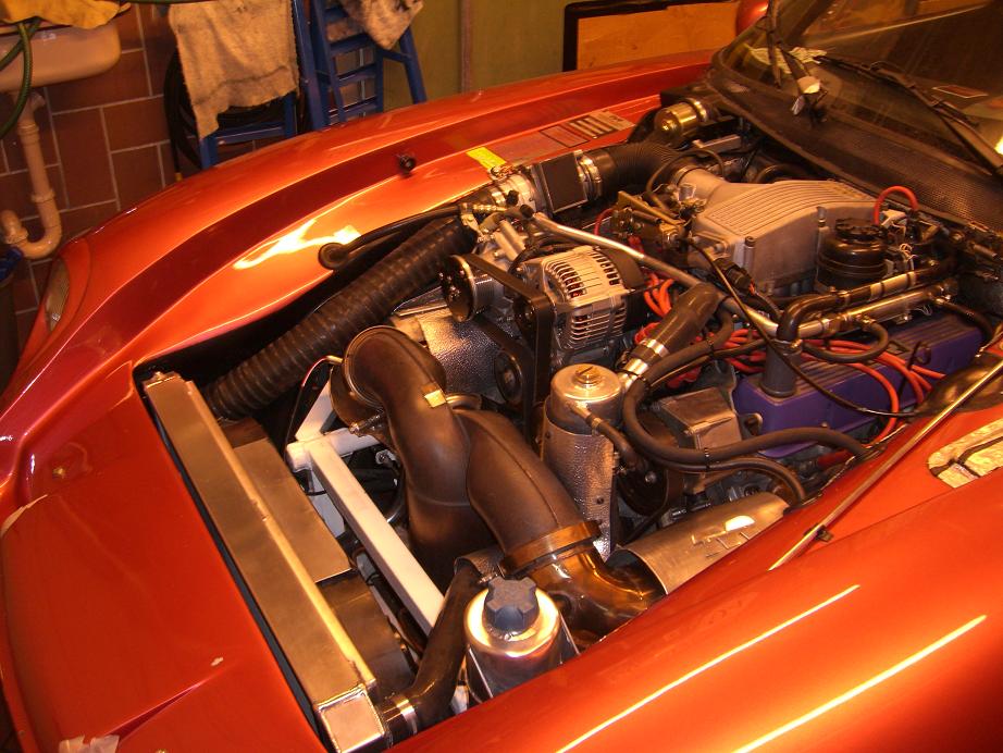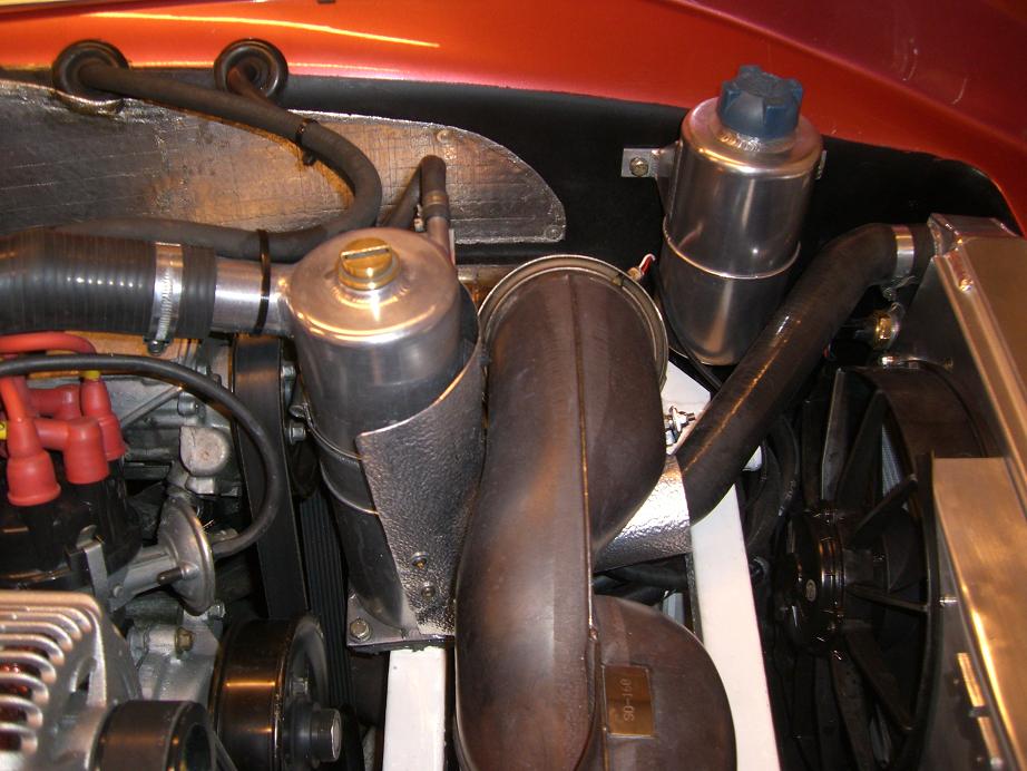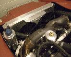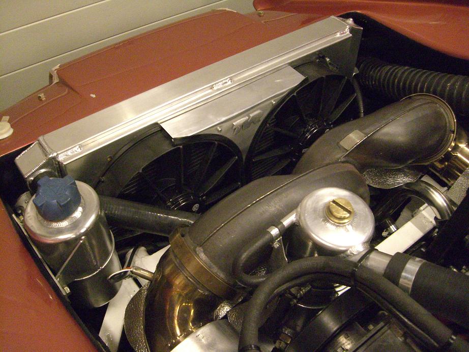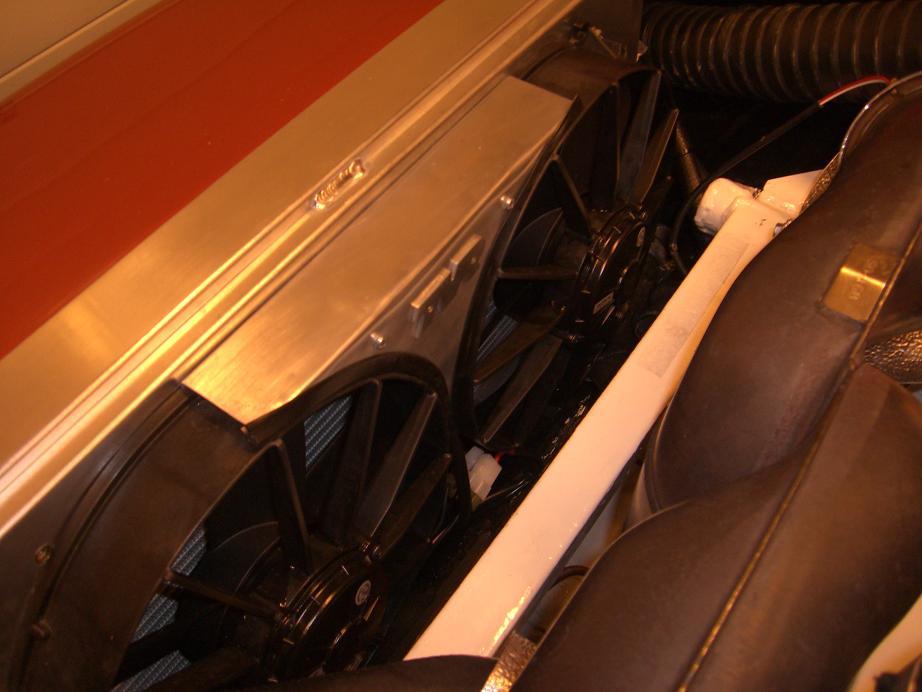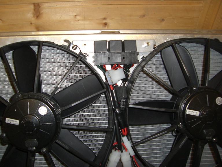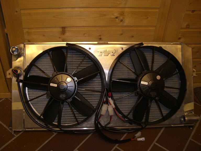 Lüftersteuerung beim Chimaera und Griffith (Eckhard Pohlmann - Chimaera 500, Mai 2008) Nachdem Rob Robertson von V8Development Ende 2007 nach dem Neu-Aufbau meines Motors der Ansicht war, daß das Kühlsystem meines Chimaera auf einem zu hohen Temperaturlevel arbeiten würde, hat er den originalen 82° gegen einen 74° Thermostat getauscht. Rob war der Meinung, daß die Kühlmitteltemperatur beim RV8 nicht viel höher als 80° sein sollte. Alles über 90° wäre nicht gut für den Motor. Vor allem wegen der allgemein bekannten Probleme mit Rißbildungen der Zylinderwandungen sowie dem Fressen der Kurbelwellenlagerschalen bei den nicht Crossbolted Motoren. Die von V8D gebauten RV8 Racer-Motoren würden sogar mit einer max. Temperatur von 70° laufen. Wegen der enormen Hitzeentwicklung im Motorraum hatte ich schon in den vergangenen Jahren immer wieder Probleme mit Kabel und Schläuchen. Bei Erreichen einer bestimmten Aufheizung stinkt die GFK-Karosserie gewaltig. Von wegen Duft von Leder und Holz. Egal mit welcher Heizungseinstellung kam bei meinem Chimaera immer heiße Luft aus den Luftausströmern. Die Aircondition hat nur während der Fahrt und bei Außentemperaturen von maximal 25° Celsius einigermaßen funktioniert. Bei Stop-and-Go oder im Stadtverkehr hat sich die Aircon bei Erreichung einer Motorraumtemperatur von 100° ohnehin abgeschaltet. Wenn sich die Kühler-Lüfter einschalten, ist das Fahrzeug bereits stark aufgeheizt und die Lüfter schaffen es nicht mehr, die Wärme abzutransportieren und das aufgeheizte Fahrzeug abzukühlen. Ein Umwickeln der Auspuffkrümmer mit Graphit-Hitzeschutzband sowie die Installation eines zusätzlichen manuellen Lüfterschalters brachte schon eine Verbesserung. Ich hatte mir deshalb vorgenommen, die maßlose Hitzeentwicklung im Motorraum meines Chimaera bereits bei ihrer Entstehung einzudämmen. Der von Rob eingebaute 74° Thermostat war der erste Schritt. Da beide Auspuffkrümmer ohnehin gerissen waren, habe ich sie gegen ACT Exemplare getauscht. Die ACT Edelstahl-Krümmer haben die gleichen Dimensionen wie die nicht mehr verfügbaren originalen TVR-Teile, sind aber passgenauer gefertigt. Die originalen TVR-Krümmer mußten mittels Spanngurten unter Gewalteinwirkung um ca. 2 bis 3cm auf jeder Seite an das Y-Teil gezogen werden. Die Lambda-Sonden können wie bisher angeschlossen werden. Bei ersten Testfahrten im letzten Oktober mit geschlossenem Verdeck mußte ich das erste Mal die Heizung aktivieren um nicht zu frieren. Die durch den Innenkotflügel geführte Frischluft blieb bei ausgeschalteter Heizung kühl. Ein ganz neues Erlebnis in meinem Chimaera. Im nächsten Schritt habe ich einen Alu-Kühler mit einer zusätzlichen, von mir entwickelten und gebauten Lüftersteuerung eingebaut. Nachfolgend einige Info zu dem Projekt mit einigen Bildern des Alu-Kühlers und dem Prototypen meiner Lüftersteuerung. Der in England von Mode-wise angebotene Umbausatz gefiel mir nicht. Das ganze sah mir elektrisch und mechanisch zu sehr nach Bastelei aus. Ich verwende für meine Steuerung einen zweiten, im Alu-Kühler eingebauten Thermostatschalter, der bereits bei 82° die zwei Lüfter mit halber Drehzahl laufen läßt. Damit wird ein ausreichender Luftdurchsatz im Motorraum sichergestellt, ohne hohe Geräuschentwicklung, Stromverbrauch und Verschleiß. Die originale Lüftersteuerung, Einschalten der Lüfter bei Erreichen von 92° Kühlwassertemperatur bleibt unverändert bestehen. Wichtig war mir, daß der Motorraum nicht durch eine Bastelei verschandelt wird. Weiterhin war wichtig, daß auch bei nicht-Funktion der Erweiterung die originale Steuerung normal weiterarbeitet. Zum Beispiel könnte die elektrische Sicherung der zusätzlichen Elektronik mal durchbrennen. Außer dem auf den Bildern gezeigten modifizierten Alu-Kühler sieht man im Motorraum nichts von der Erweiterung. Auf den Bildern nicht sichtbar ist ein Kabelbaum, der zusätzlich im Motorraum installiert wird. Zum Einbau müssen lediglich zwei Drähte der originalen, bereits bestehenden Kabelverbindung zum Otter-Switch (92°) aufgetrennt werden und mit zwei Ampex Steckern versehen werden. Die bisherige, Lüfter-Steuerung bleibt aber original und voll funktionsfähig erhalten. Über drei optionale, in den Innenraum geführte Drähte können die Lüfter manuell über einen Taster eingeschaltet werden sowie die Betriebsarten angezeigt werden. Bei Erreichung von 82° “Grün”, 92° “Rot” und bei manueller Lüfterschaltung “Rot-blinkend”. Natürlich kann man als Schalter und Anzeige alles Mögliche nehmen. Zum Einschalten der Lüfter muß lediglich nach Masse geschaltet werden. Dazu könnte man den sowieso unnötigen Schalter der Instrumentenbeleuchtung nehmen. Im Drehzahlmesser gibt es auch eine nicht genutzte Lampe, die man zur Betriebsanzeige verwenden könnte. Die Betriebsanzeigen müssen auf 12V geschaltet werden. Aber warum einfach, wenn es auch komplizierter geht. Ich habe von meinem Start/Stop- Zündung/Motor-Projekt noch einen Aluminium Piezotaster mit ringförmig angeordneten roten und grünen LEDs. Diesem mußte sich das Schaltungsdesign unterordnen. Anbei ein Bild des Schurter Piezo-Tasters. Das Bild zeigt die Version mit grünen LEDs. Mein Taster hat grüne und rote LEDs. Ich habe dazu eine Alu-Umrandung "gedengelt", wie ich es bereits bei dem Taster für mein Start/Stop-Zündung/Motor Projekt gemacht habe. Ich meine, der Taster paßt jetzt ganz gut zu den originalen TVR-Schaltern. Den Piezo-Schalter habe ich zusammen mit einem normalerweise im Tuscan und Griffith SE verwendeten Luftausströmer in einer Aluplatte anstelle des häßlichen Plastik-Ausstömers plaziert. Auf der Beifahrerseite sieht es ähnlich aus. Mit dem dortigen Alu-Schalter wird eine Fußraumbeleuchtung geschaltet (Dauer-An/Aus/Türkontakt). Erste, mit der Lüftersteuerung in den letzten Monaten gemachte Erfahrungen sind sehr positiv. Die Kühlmitteltemperaturanzeige des Motors bleibt jetzt während aller Fah